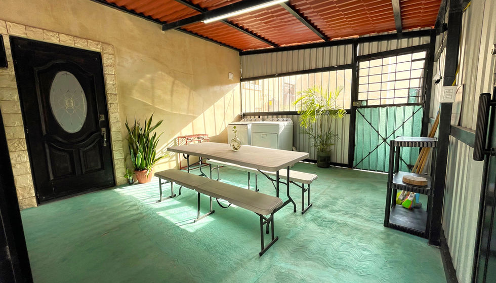 🚗 Fácil llegada y comodidad desde el inicio: Estacionamiento gratuito justo al frente, con acceso directo a un porche techado equipado con una mesa grande y bancos de madera, perfecto para convivir, disfrutar de comidas al aire libre 🍽️ o simplemente relajarte en compañía. Desde ahí, ingresa a un patio privado rodeado de tranquilidad 🌿.